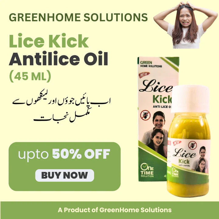 اب چھٹکارا پائیں سر کی جوؤں اور لیکھوں سے! لائس کِک اینٹی لائس آئل ایک محفوظ، مؤثر اور تیز ترین حل ہے جو صرف ایک بار کے استعمال سے جوؤں اور ان کے انڈوں کو ختم کر دیتا ہے۔